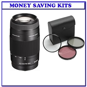 * 75-300mm telephoto zoom lens with f/4.5-5.6 maximum aperture for Alpha digital SLR cameras