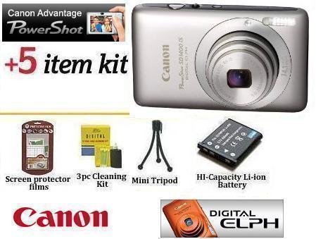 Canon PowerShot SD1400 IS Digital ELPH Camera (Silver) 14.1MP With The Canon Complimentary Accessory Kit Includes Spare Extended Life Battery Pack, LCD Screen Protectors + Flexible Mini tripod + More Feature